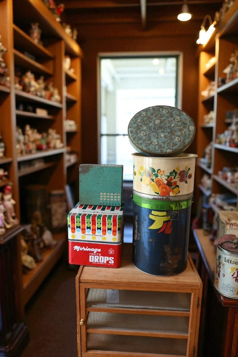 - ○古いレトロな缶 6点セット 森永ドロップ ビスケット お菓子 洗剤「テル」 昭和 シャビー ヴィンテージ 古道具のgplus広島 2508i