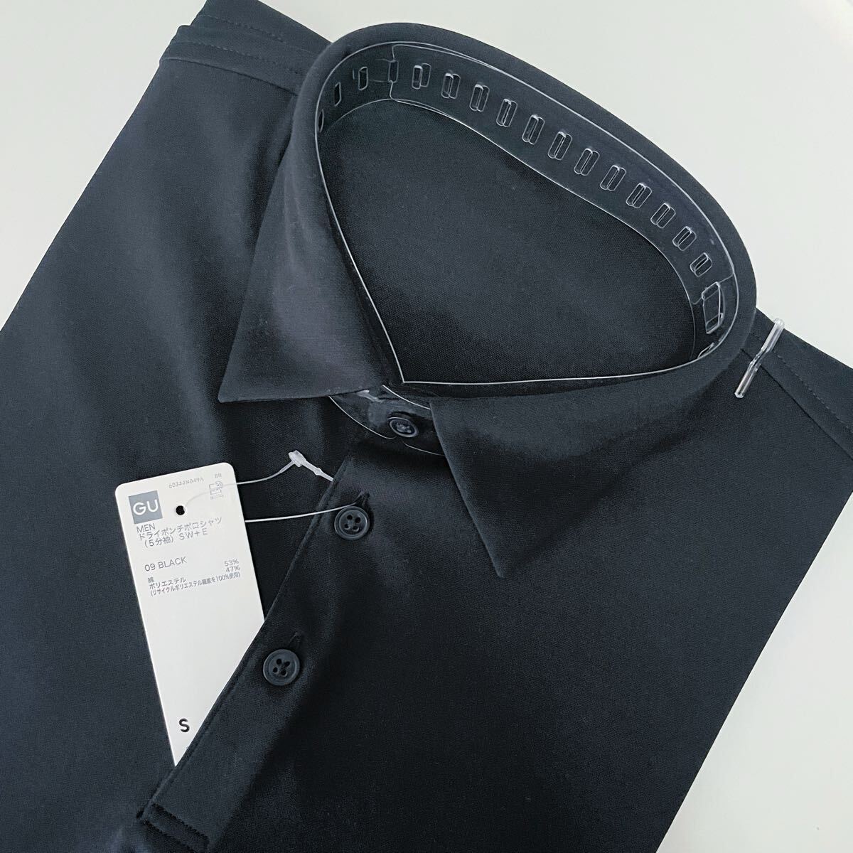 - 新品 S GU ジーユー ドライポンチ ポロシャツ(5分袖)SW+E ブラック