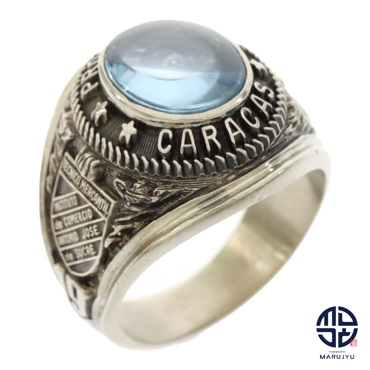 > JENKINS社製 K10 10K 水色石付き PROMOCION CARACAS カレッジリング メンズ 指輪 ジュエリー アクセサリー 約17号