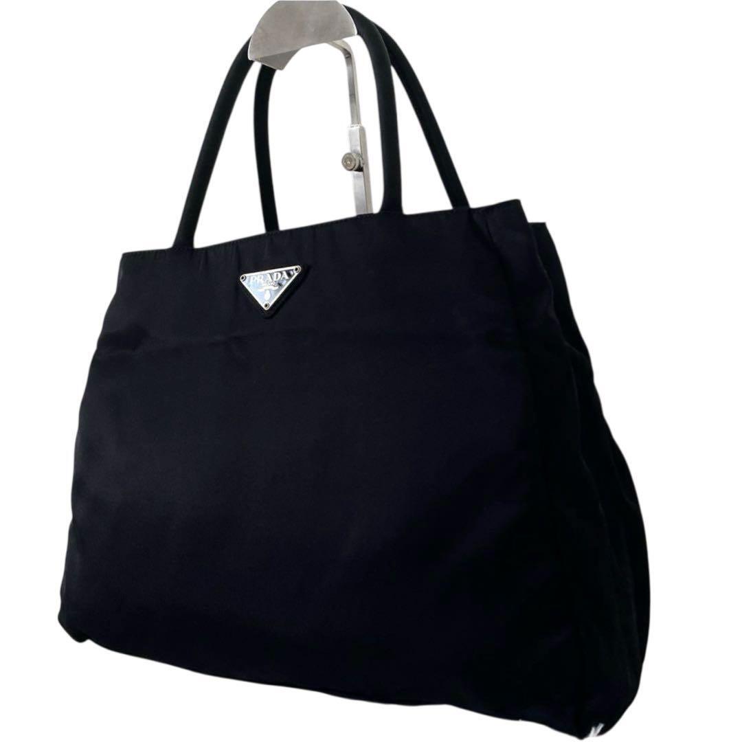 - 【美品】PRADA プラダ トートバッグ ハンドバッグ 肩掛け可能 手提げカバン 三層式 三角ロゴプレート ナイロン ポコノ ブラック 黒 白タグ