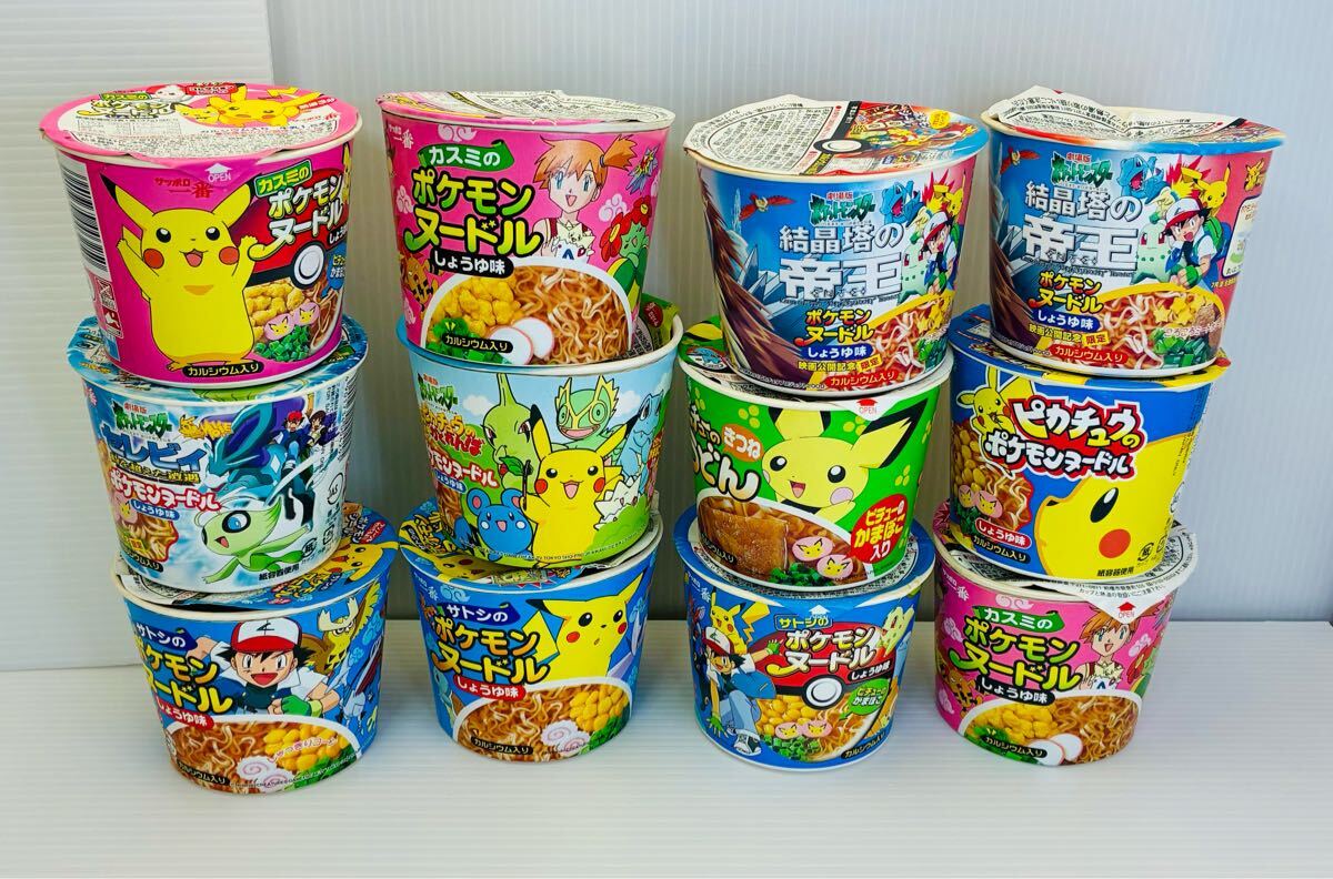 - 【当時物・2000年頃】ポケモン サッポロ一番 ポケモンヌードル 空箱 12個セット 結晶塔の王 カスミ ピチュ― セレビィ ピカチュウ サトシ