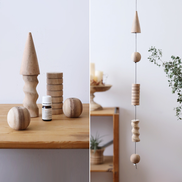 - 最終SALE 天然無垢ウッド 香るガーランド アロマウッド アロマ オブジェ 店舗 モビール W03