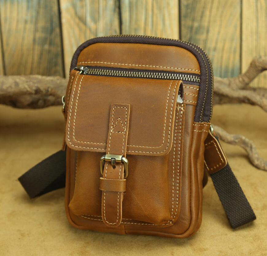 - 上質2way ヒップバッグ ウエストバッグ ショルダーバッグ メンズ バッグ 牛革 本革 クレイジーホースレザー 斜めがけ 通勤 仕事 2色