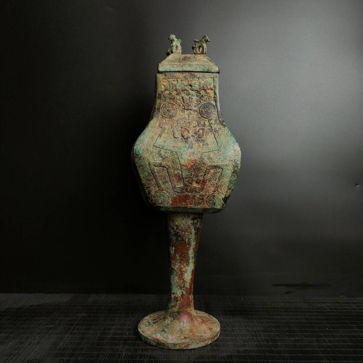 - 『館蔵珍品 戦 青銅製 高豆 青銅器 置物 賞物』稀少珍蔵品 古賞物 貴重物品 収蔵品 中国古美術 時代物 古董品