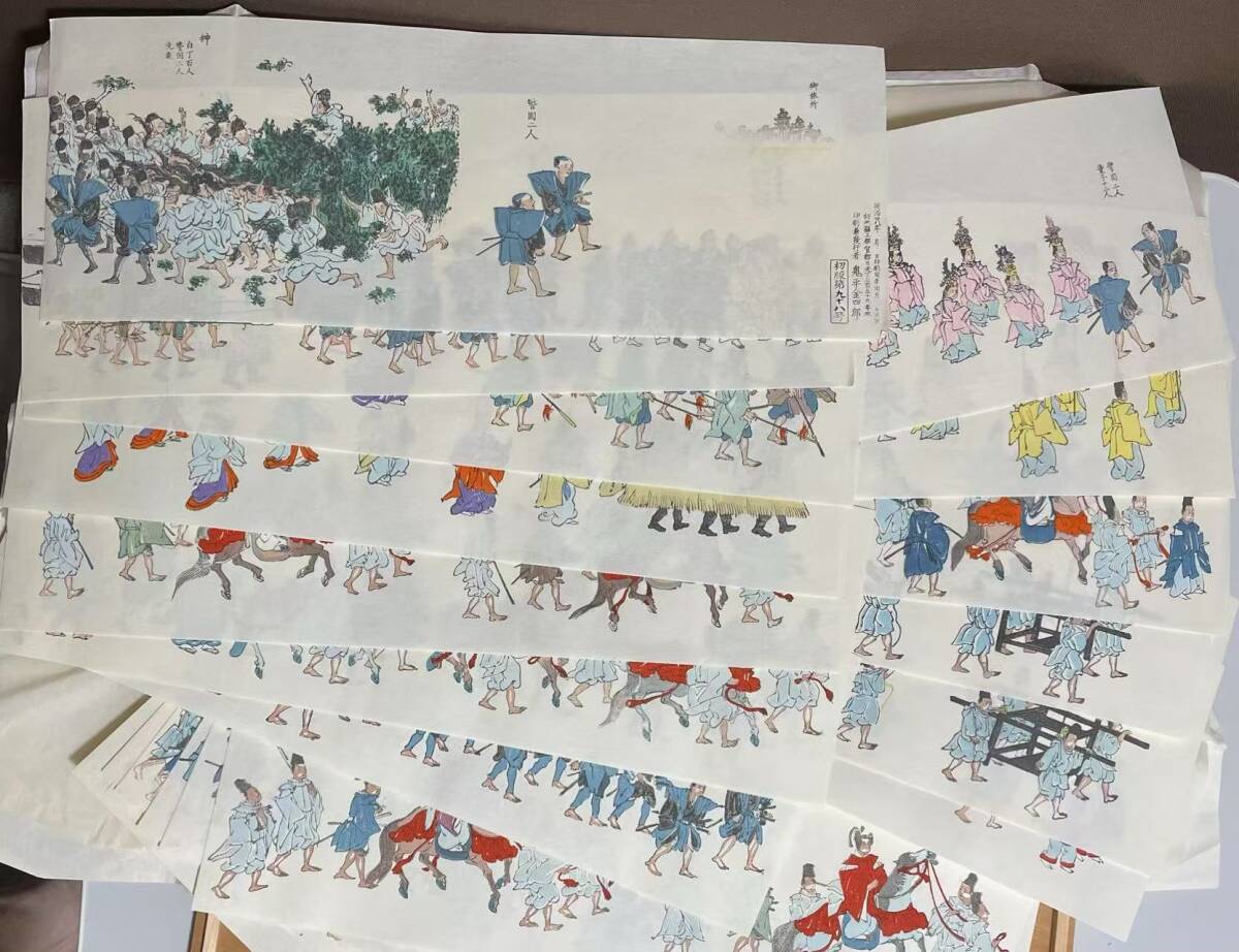 - 東照宮千人武者行列 鬼平金四郎作 初版第九十八号 21枚 明治28年印刷 江戸時代日光版画 浮世絵 木版画