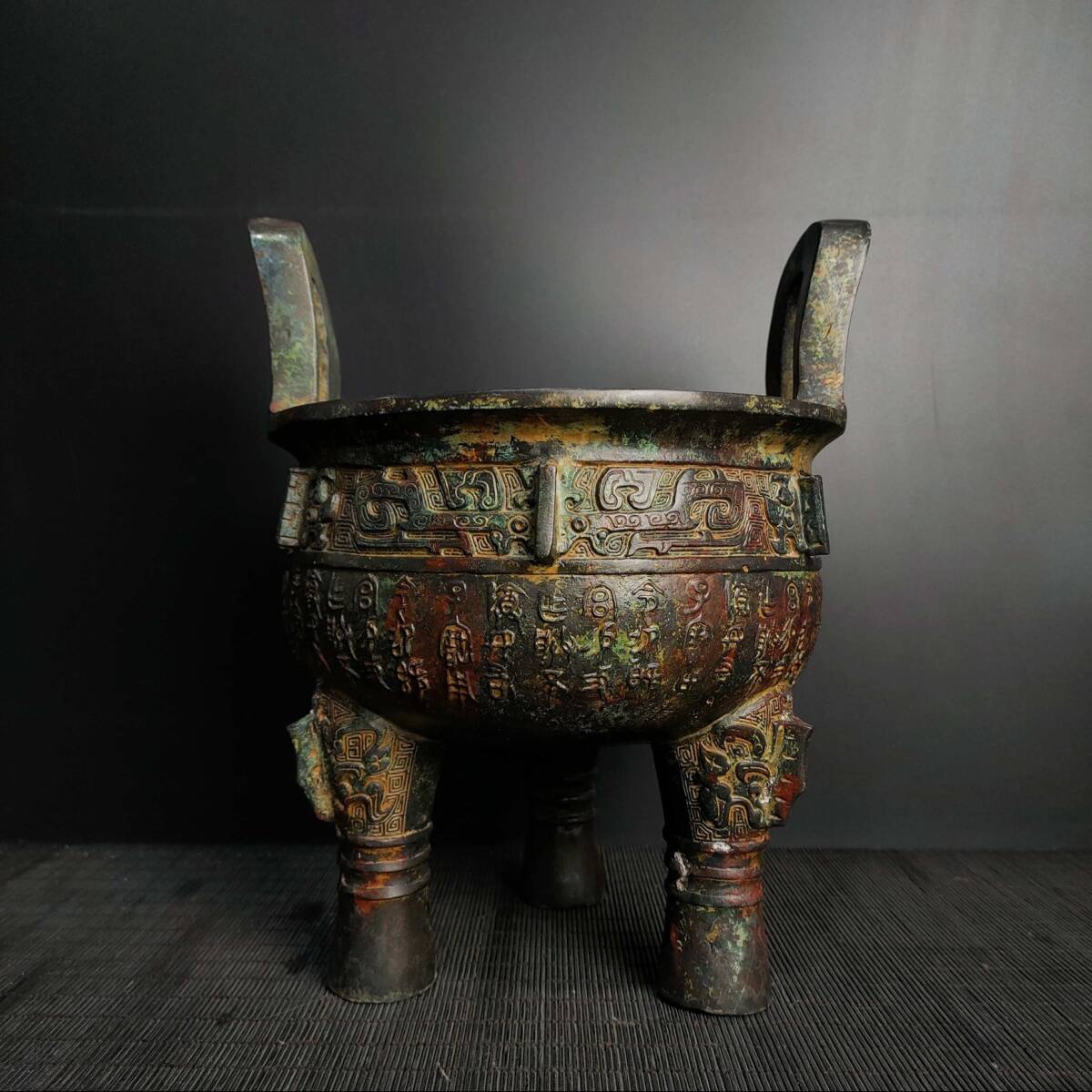 - 『館蔵珍品 商周 青銅製 銘文三足圓鼎 青銅器 置物 賞物』稀少珍蔵品 古賞物 貴重物品 収蔵品 中国古美術 時代物 古董品