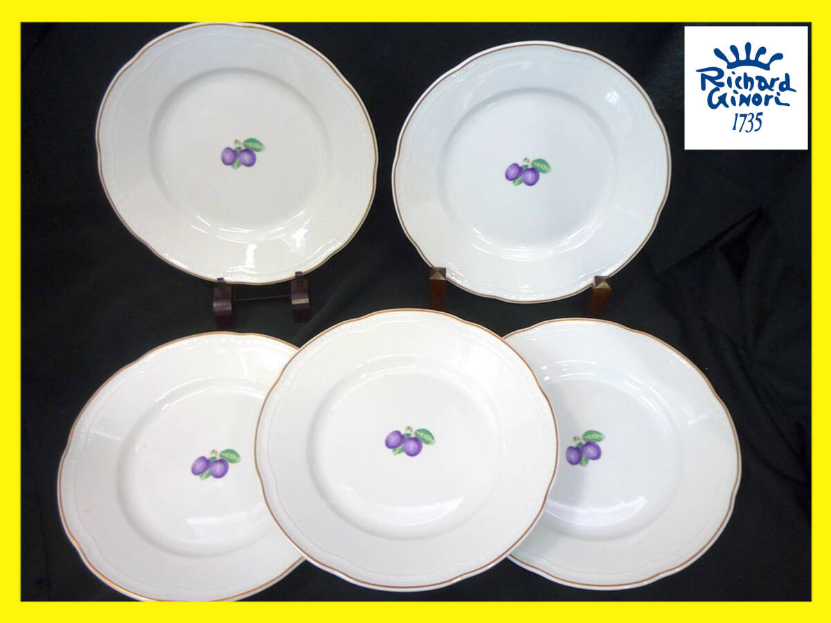 > リチャード・ジノリ Richard Ginori ボンジョルノ プルーン プレート お皿 5枚セット 大皿 中皿 Italy イタリア製 金彩 金縁 フルーツ