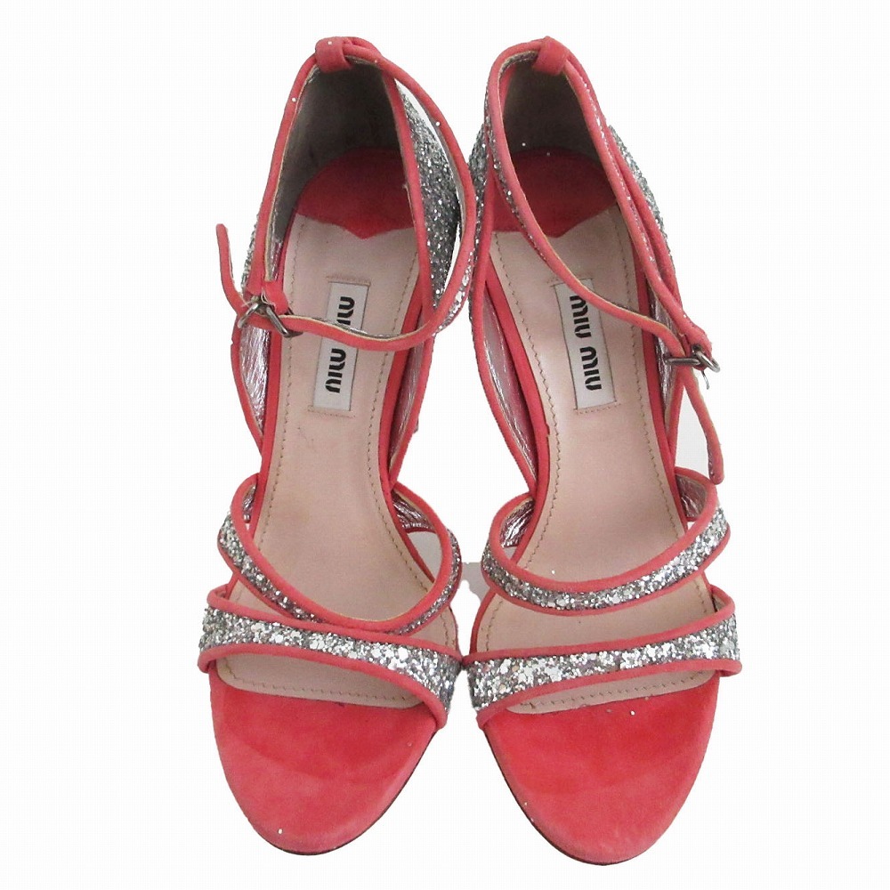 > miumiu ミュウミュウ グリッター サンダル パンプス ハイヒール シルバー ピンク サイズ22cm レディース 【中古】