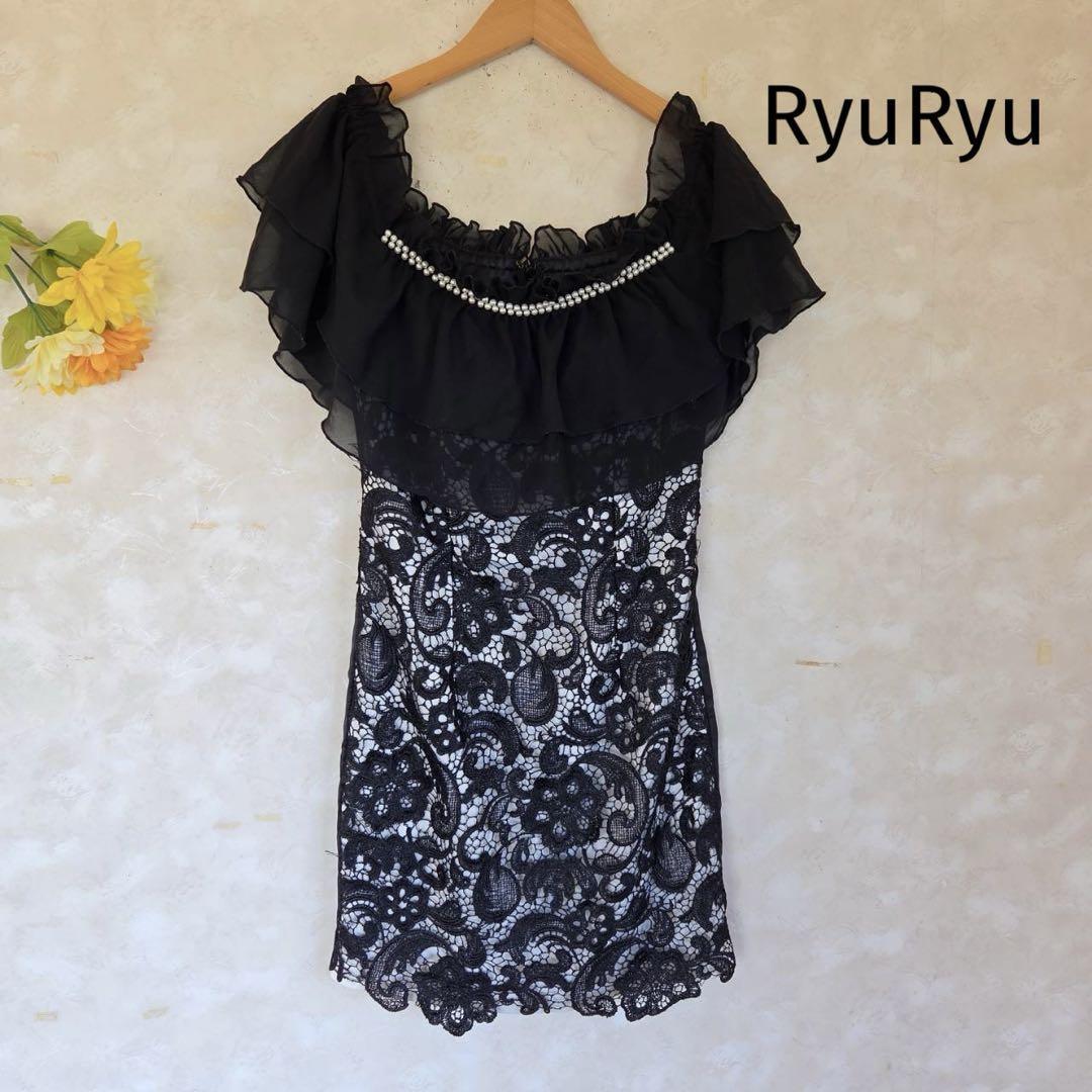 - リュリュ RyuRyu ワンピース ナイトドレス パール レース 黒