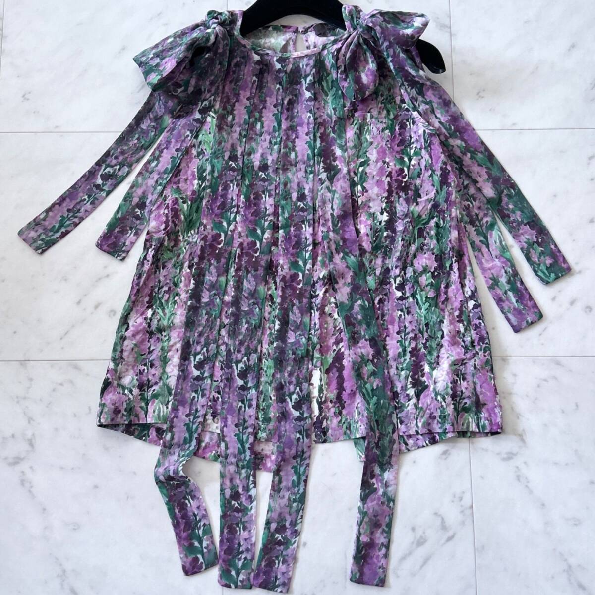 - MaxMara シルク花柄ブラウス リボン装飾 38 ノースリーブ Mサイズ