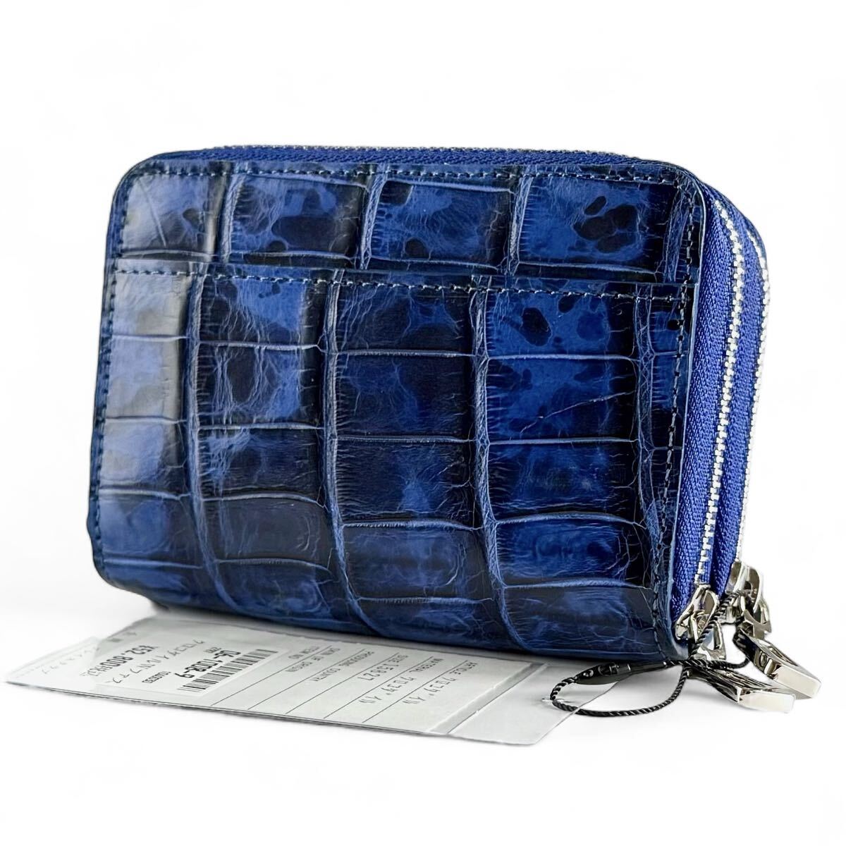 - 【新品未使用】マットクロコ ラウンドファスナー 折り財布 2室 コンパクトウォレット ダブルジップ ワニ革 エキゾチックレザー ブルー