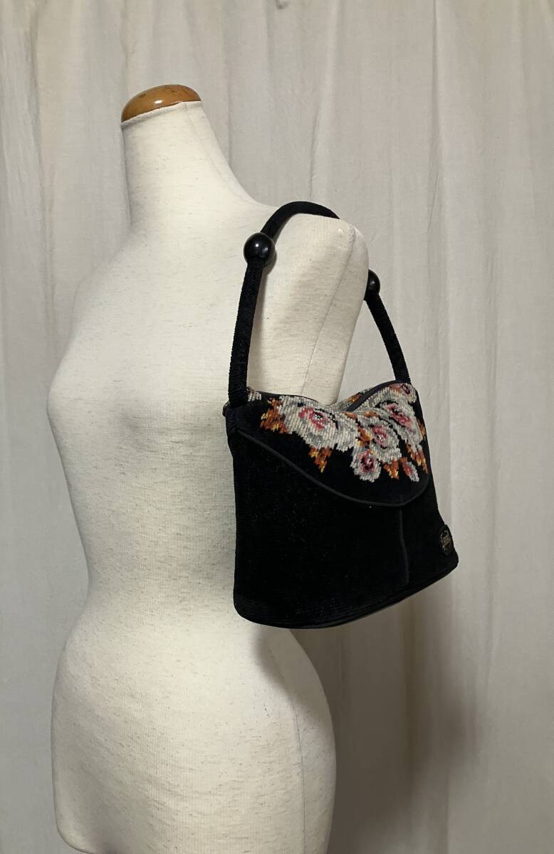 - FEILER フェイラー シェニール織り ハンドバッグ/かばん 黒ベース 中古品