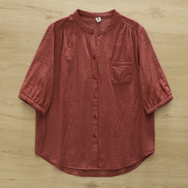 - c 2508 ダブルガーゼ フリーサイズ チュニック トップス ナチュラル 綿100% 通気性肌触り抜群 サラサラ ゆったり Vネック チェック柄4