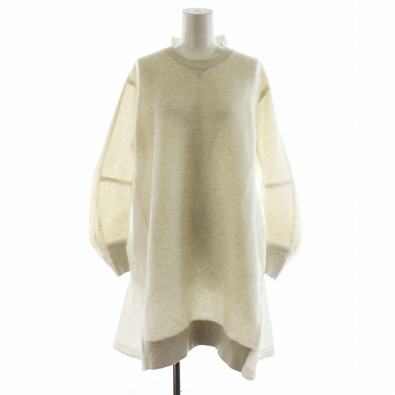 > サカイ sacai ワンピース ひざ丈 長袖 シャツ スウェット 切替 3 グレー 白 ホワイト 15-02334 /AN32 レディース