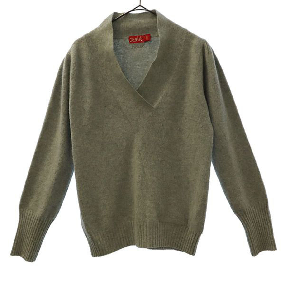 X-girl エックスガール アンゴラブレンド 長袖 Vネック セーター 1 グレー ニット レディース拍卖
