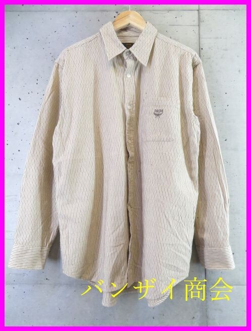 > 8080s17◆良品です◆MCM エムシーエム ロゴ刺繍 長袖ストライプシャツ LL/ワークシャツ/ジャケット/ブルゾン/ニットセーター/バッグ鞄