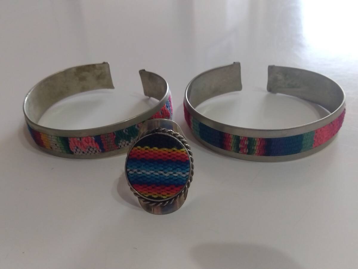 - 即決¥700 エスニック 刺繍 バングル2本 リング セット 男女兼用