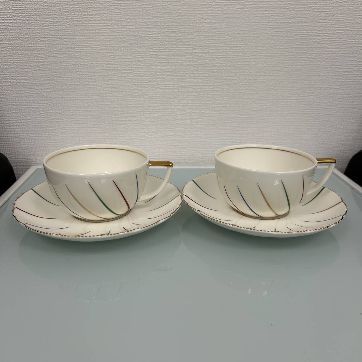 - ★☆ランバン LANVIN ティーセット カップ&ソーサー 2客セット ストライプ模様 洋食器#14583☆★