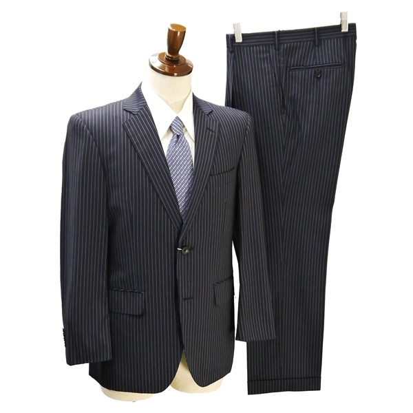 表地(全体的)状態:B(ジャケットの両袖に弱めのてかりが見受けられます。スラックス背面の股上から両膝に弱めのてかりが見受けられます。その他の状態は良い事から、今後もまだまだご愛用頂けるお品だと思われます。)