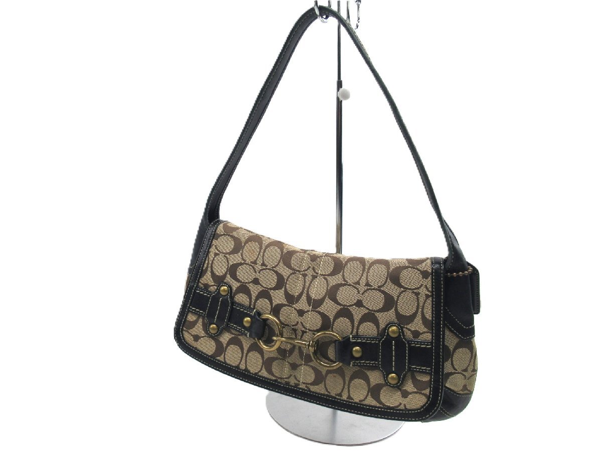 > ★【B送900円】2201 COACH コーチ シグネチャー ワンショルダーバッグ ハンド キャンバス×レザー ロゴ総柄 ゴールド金具