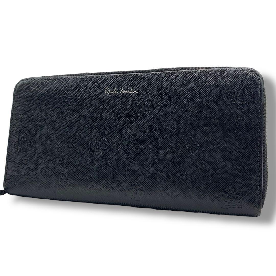 - ポールスミス レザー ラウンドファスナー 総柄 黒 ブラック