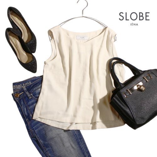 > 美品 スローブ イエナ SLOBE IENA 夏 シンプル オフィス フォーマル Vネック ジャージ― ノースリーブカットソー ブラウス ホワイト 白 36