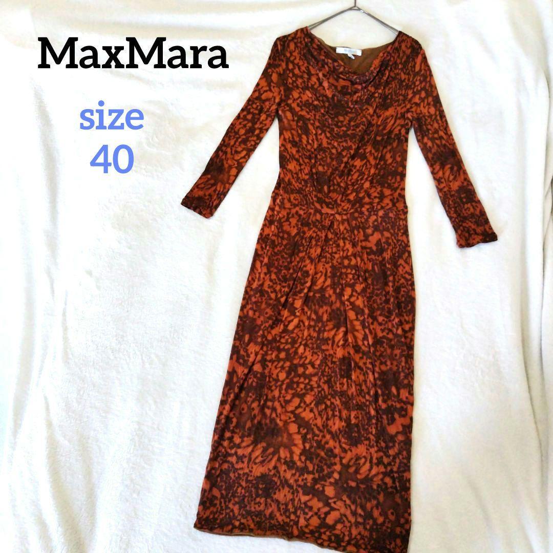 - Max Mara マックスマーラ 総柄ロングワンピース レオパード 花柄 ドレープ 長袖 白タグ タイト 40 大きいサイズ ロングスリーブ フラワー