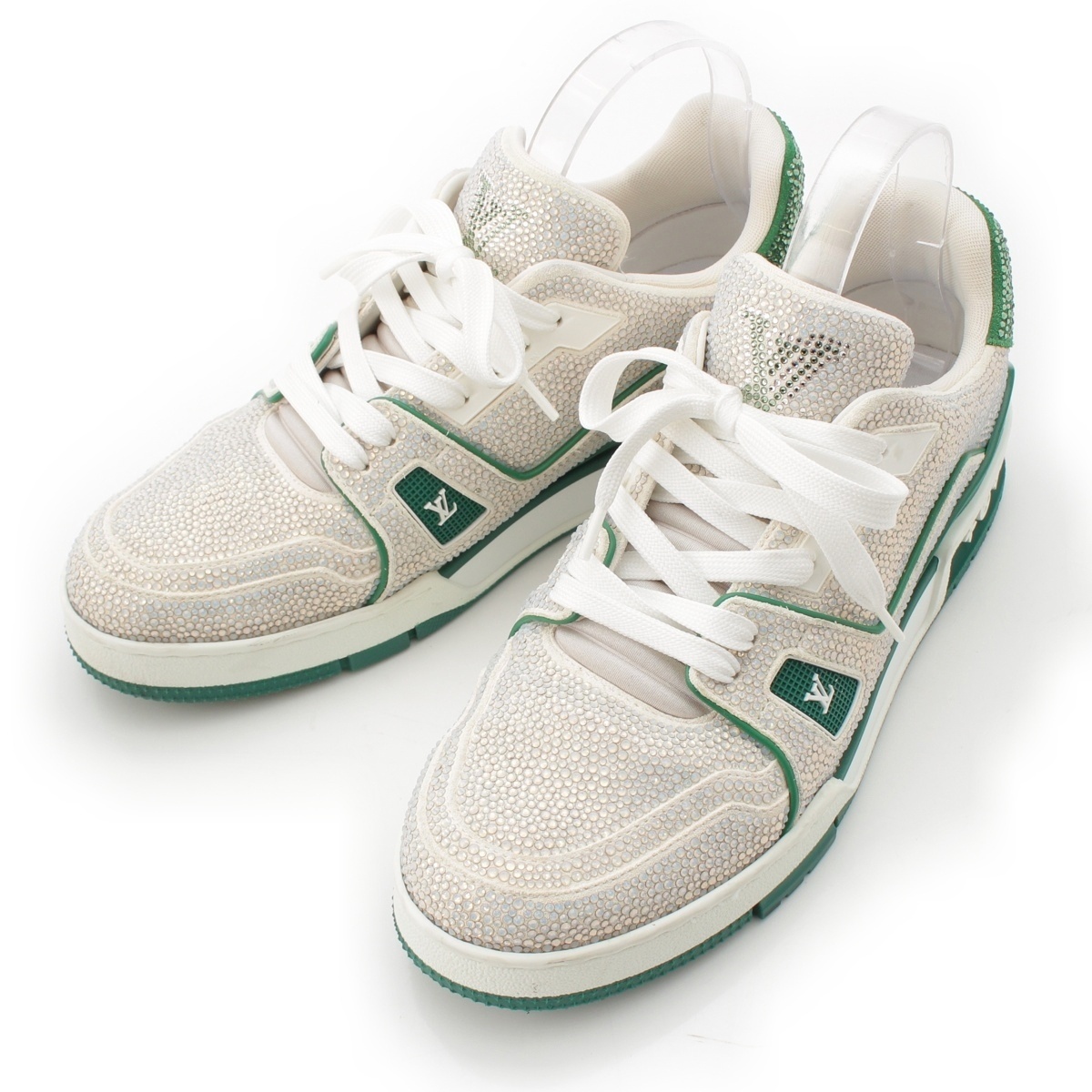 - ルイヴィトン Crystal-Covered LVトレイナー ラインストーン ローカット スニーカー グリーン×ホワイト 7 1/2【中古】