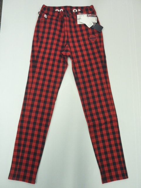> r203 新品タグ付 PEARLY GATES パーリーゲイツ レディース パンツ チェック柄 サイズ00 伸縮性有り ストレッチ 赤×黒
