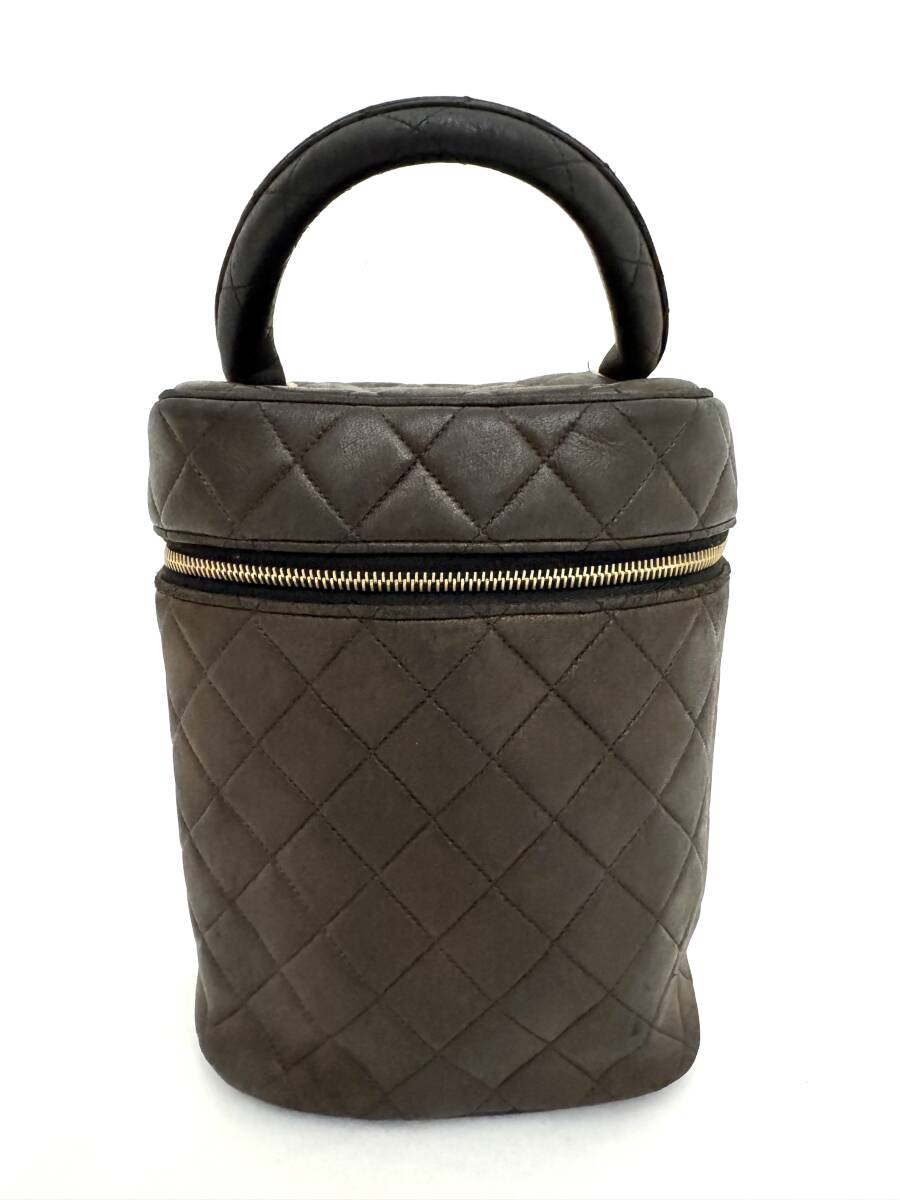 - 7G1005【本物保証】シャネル バニティ 縦型 ハンド バッグ マトラッセ ラムスキン レザー ココマーク ダーク ブラウン CHANEL