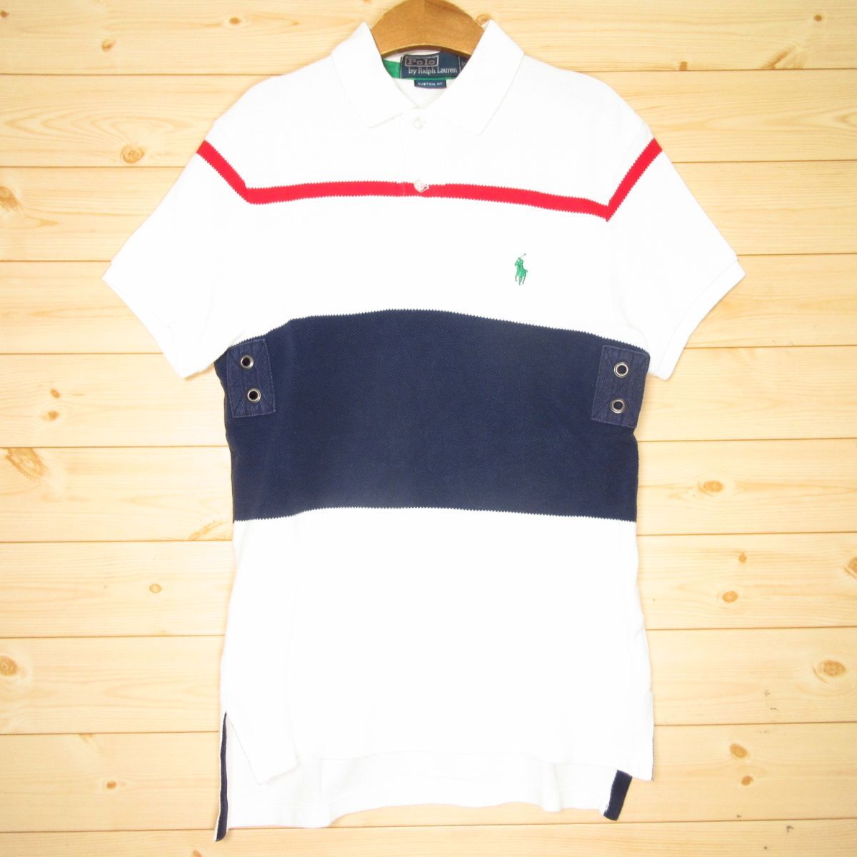 - ◎POLO Ralph Lauren ラルフローレン カスタムフィット ポロシャツ 半袖 ポニー 刺繍 ボーダー柄 定番 古着 メンズ 白 Sサイズ◆AA4118