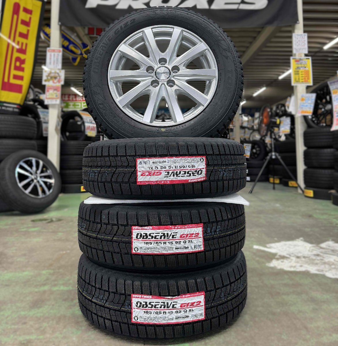 > 新型シエンタ 20系プリウス etc. [新品スタッドレス] 185/65R15 TOYO オブザーブギズ2 2025年製 + [中古] 社外 15インチ 4本セット