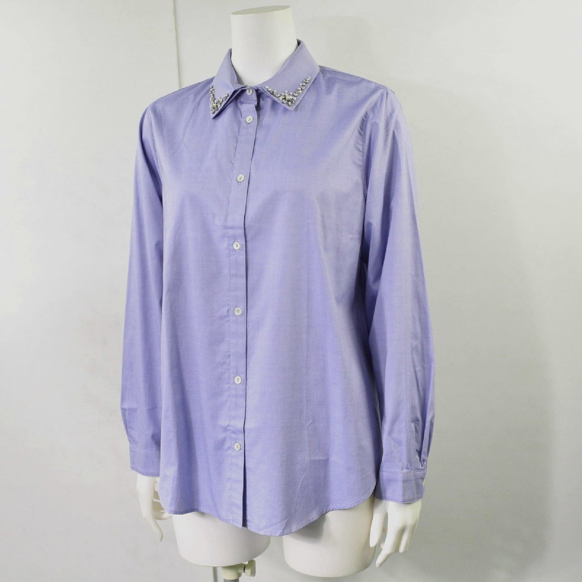 > 5000-KA00371★組曲 L 大きいサイズ★新品タグ付き 美品 取り外せるビジュー襟 サックス ブルー 長袖シャツ 6/15号 ブラウス