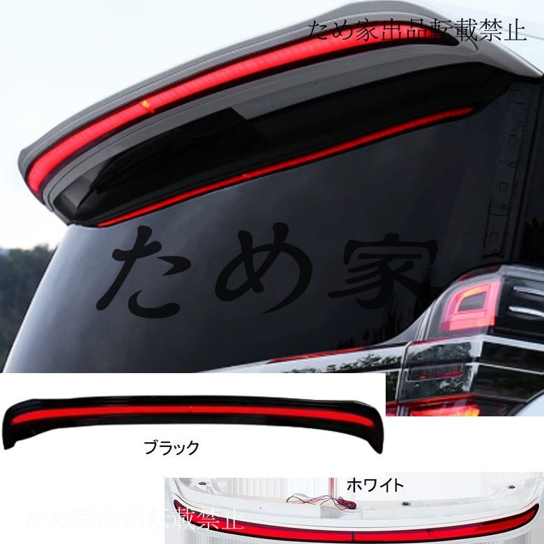 > 2015~2022年 アルファード / ヴェルファイア(30系)対応 ライト付き一体型リアウイング スポーツ貫通スポイラー(ブラック/ホワイト)