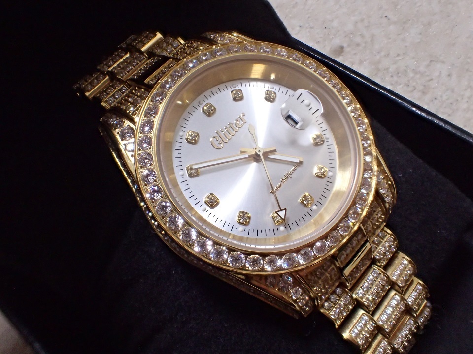 > 正規購入品使用極少Glitter豪華腕時計Iced California Watch GOLD/SILVERゴールドグリッターカリフォルニアウォッチfrom California