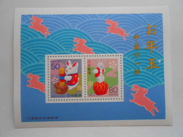 - 1999お年玉切手 うさぎ 未使用50円80円切手小型シート(999シ)