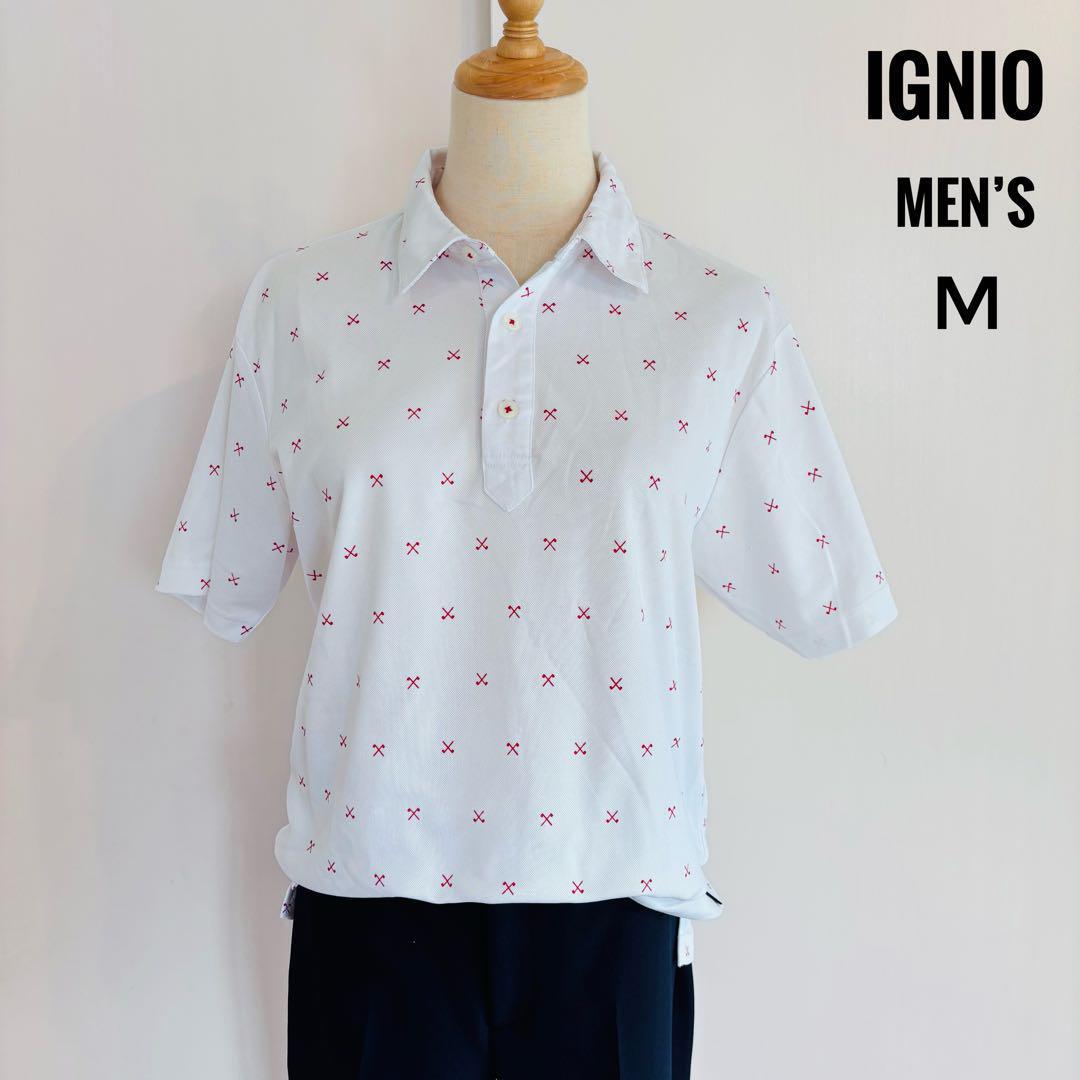 - IGNIO イグニオ メンズ ゴルフウェア 半袖ポロシャツ 吸汗速乾 ドライバー柄 白 M