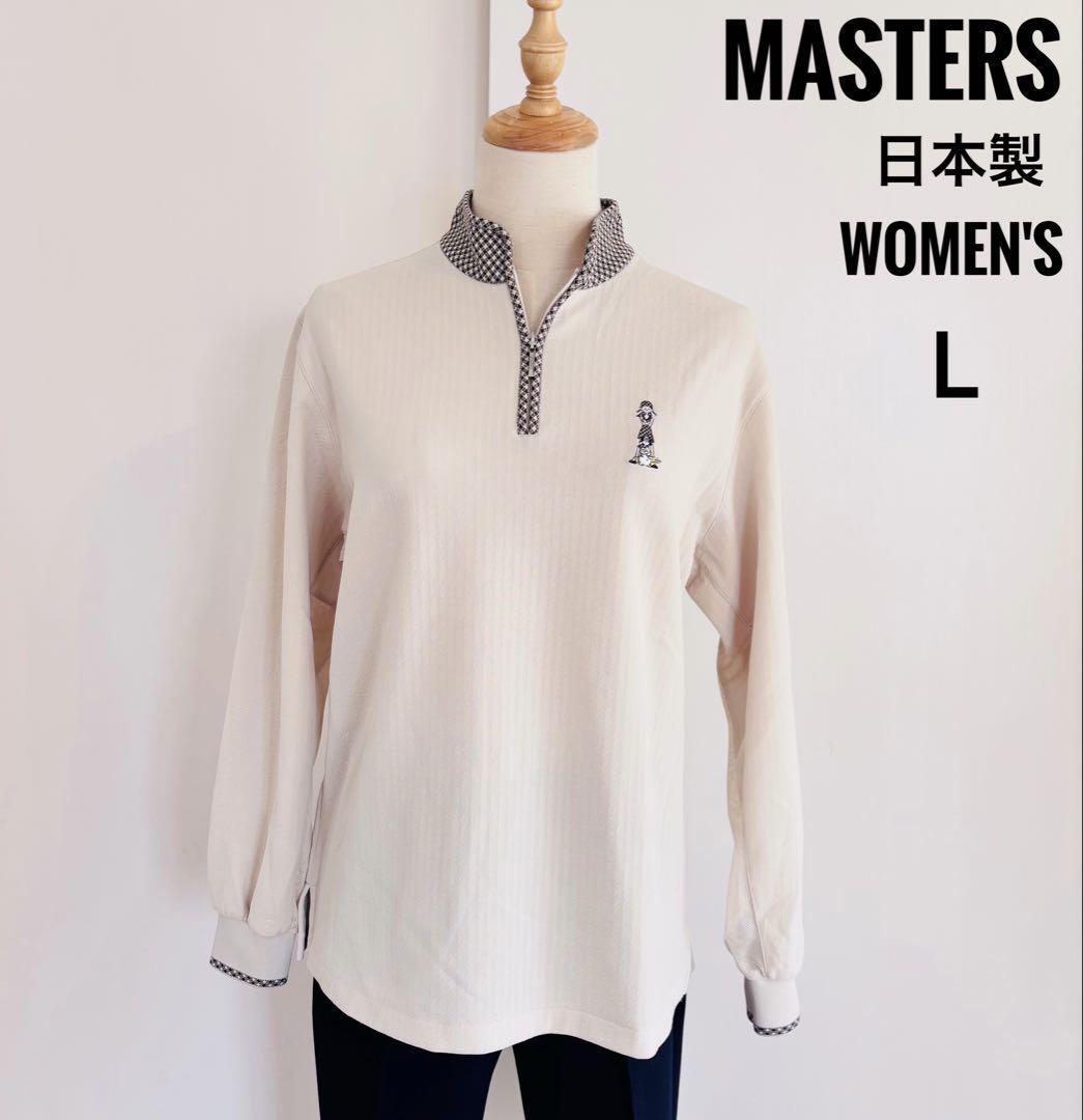 - MASTERS マスターズ レディース 日本製 通気性良好 刺繍ロゴ メッシュスリーブ 長袖シャツ トレーナー L ベージュ