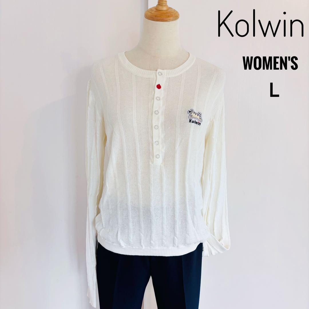 - Kolwin コルウィン レディース ゴルフウェア 刺繍ロゴ ヘンリー リブ 長袖ニット セーター L ホワイト系