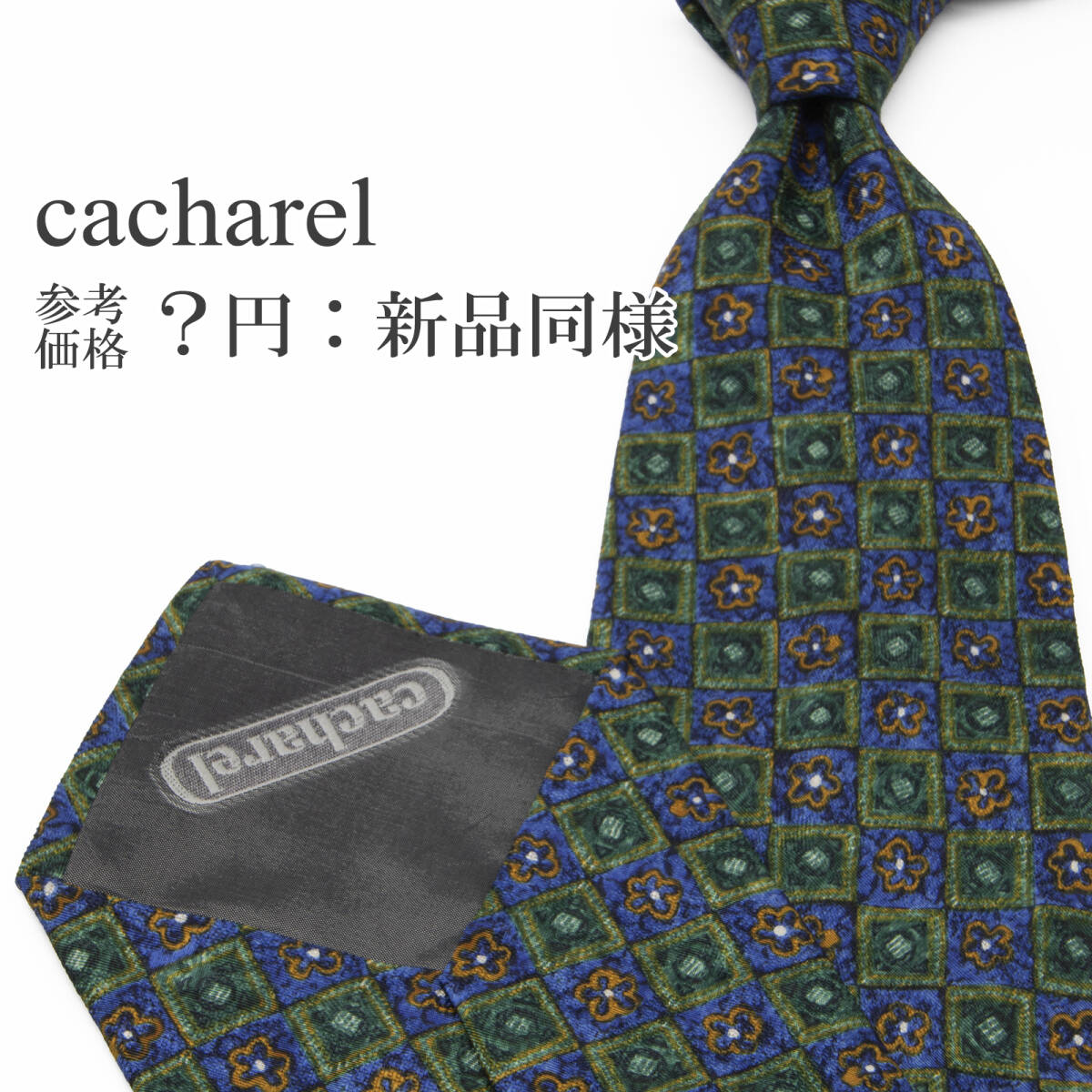 > 送料無料 キャシャレル ネクタイ ジャガード クレリックタイ 新品同様 青 グリーン 黄緑色 オレンジ 白 四角 花 ブランド イタリア製 P235