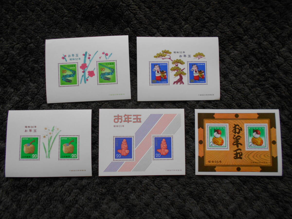 - お年玉切手1977~1981年 5年分 未使用20円切手小型シート5種