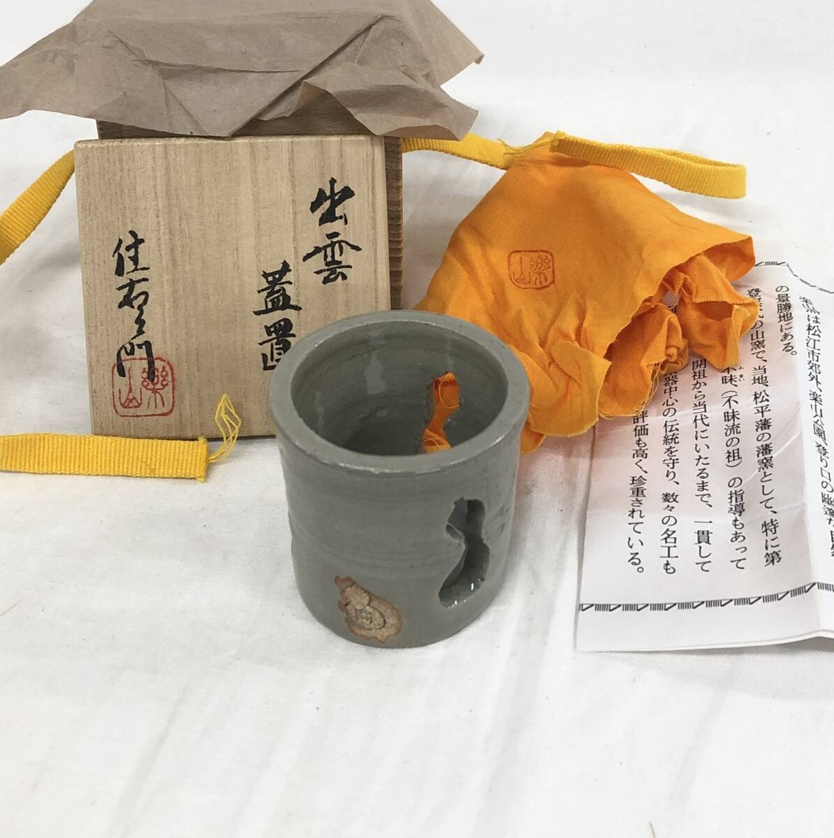 - 楽山焼 出雲蓋置 長岡住右衛門 出雲焼 ★共箱付き 島根 茶道具 骨董品 蓋置 陶芸品 空権