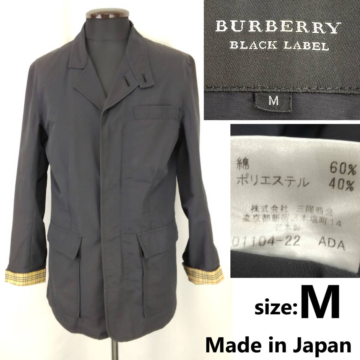 > 美品/三陽商会/日本製★BURBERRY BLACK LABEL/バーバリー★春秋チェスターコート【メンズM/黒】ロング丈ジャケット/アウター/jumper◆82-h