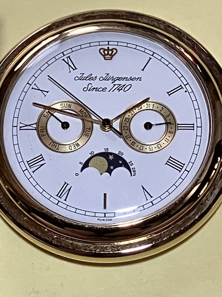 - ユールヤーゲンセン/Jules Jurgensen ◆ 彫金ケース デイデイト/ムーンフェイズ ハンターケース 懐中時計 不動品 美品