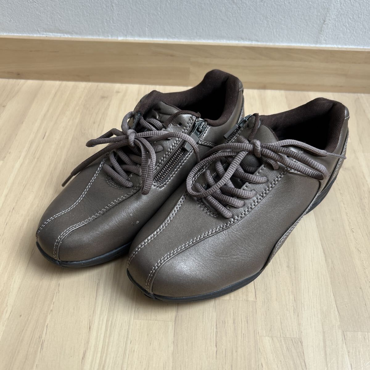 - 22.5 新品 ミズノ サイドジップ 定番 スニーカー 運動 ウォーキング ブラウン
