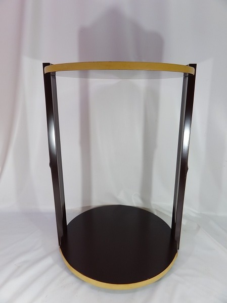 - 10Wh/3-6 溜塗竹貼 而妙斎好 丸卓 組立式 茶棚 小棚 茶道具
