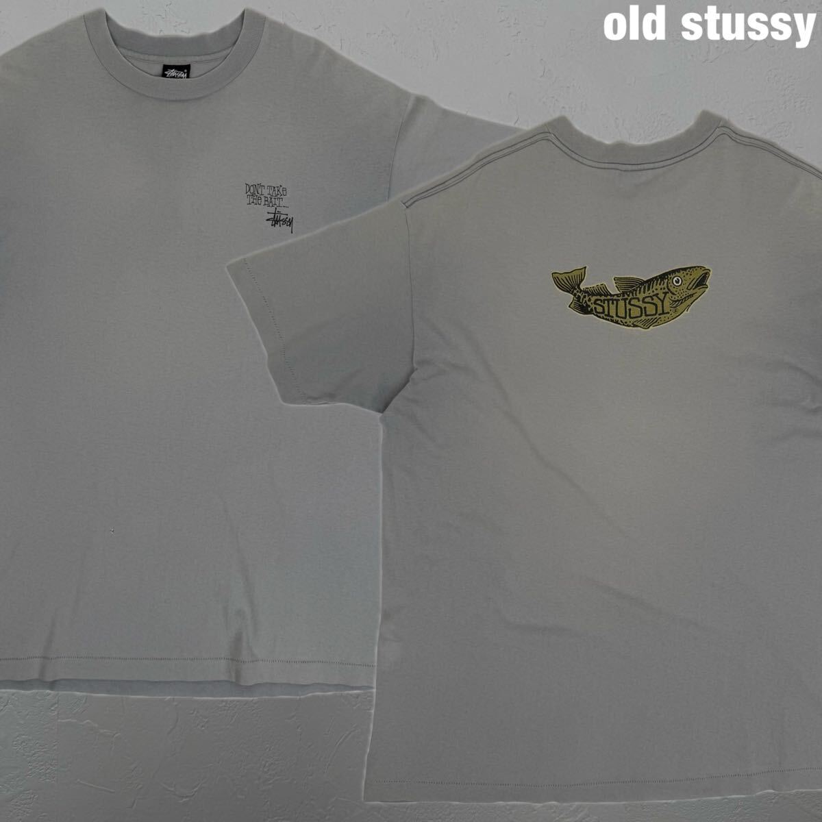 - old stussy 80s 黒タグ XL 魚 Tシャツ USA製 オールドステューシー ビンテージ シングルステッチ アメリカ製 古着