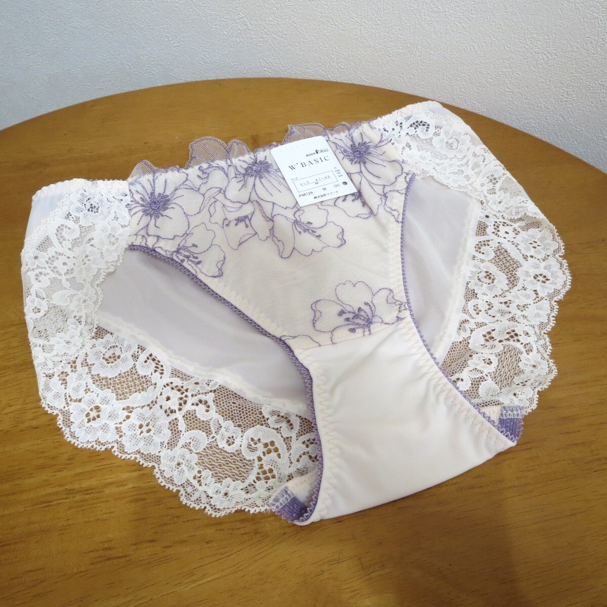- 【未使用】Wacoal AMPHI W’BASIC(ワコールアンフィ)ノーマルショーツ Mサイズ 薄ピンク系 花柄 エンブロイダリーュレース 送料180円♪