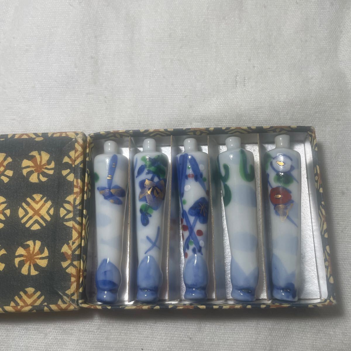 - ◯箸置き 金彩染付け 花柄 作印有り ◯セット 箱痛みあり 箸置き 綺麗 ◯Xー112