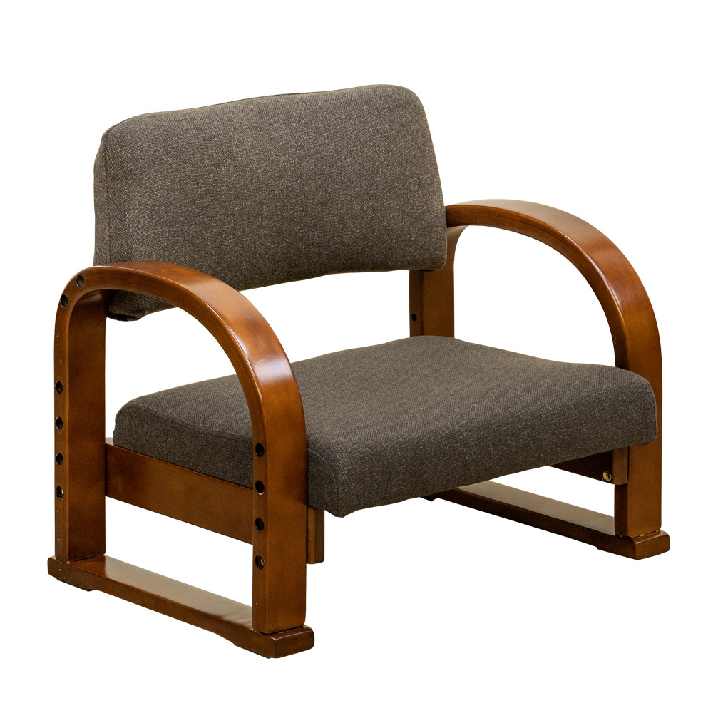 - 高座椅子 肘掛付きチェア 高さ調節可能 お子様のいすとしても 布張り ファブリック コンパクト CX-F01(BR) ブラウン